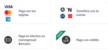 Puedes pagar con tu tarjeta de crédito, débito, transferencia bancaria.